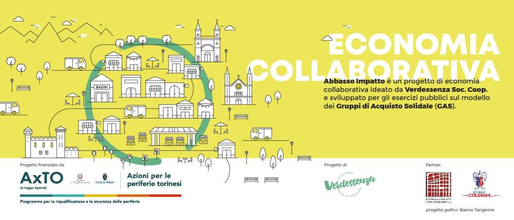 Abbasso Impatto è un progetto di economia collaborativa ideato da Verdessenza Soc. Coop. e sviluppato sul modello dei Gruppi di Acquisto Solidale (GAS), finanziato da AxTO. E’ un progetto di economia collaborativa che offre agli esercizi di ristorazione e ospitalità di San Salvario (dal bar al B&B), prodotti e servizi ecosostenibili, ambientalmente ed economicamente. Perché? Per ridurre gli impatti ambientali nei consumi degli esercizi commerciali e per garantire prezzi sostenibili alle forniture grazie all’acquisto di gruppo.