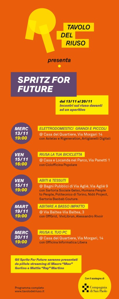 Il “Tavolo del Riuso” nasce nel 2016, su stimolo della Compagnia di Sanpaolo, per aggregare alcune tra le esperienze più significative dell’area metropolitana torinese. Del tavolo fanno parte associazioni culturali, cooperative sociali, testate giornalistiche. Tutti soggetti no profit che si occupano di ambiente o che svolgono funzioni preziose nel contesto dell’economia circolare.